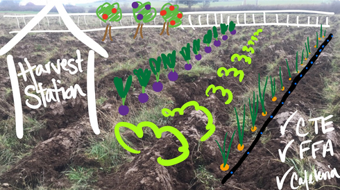 If you've been following along with our Garden Proposal (linked in the Our Program) you'll notice that we have been very successful in meeting our annual goals - an achievement we are super proud to share! One of our goals this year is to obtain a greenhouse for our new production site. We hope to raise enough money through fundraising efforts. We've also been working hard to lay out a plan to present just how best to utilize the recently acquired space for our production gardens. Also pictured, is the greenhouse interior where you'll see that there is more than enough space to growing AND indoor class seating space for those rainy days! Here is a fun sneak peek at some our planning process: